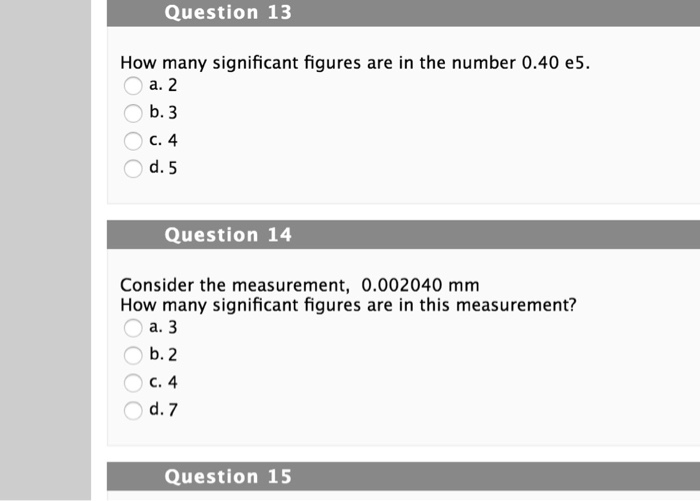 This rule should be simple, if the digit is not zero, count it as significant. Values obtained by counting are exact numbers; Recall that for multiplication and division, the answer uses the least number of significant figures found in the question. Determine how many significant figures a given number has. Numbers that are obtained by measurement are called inexact numbers since there is always a degree of uncertainty about the measured value.